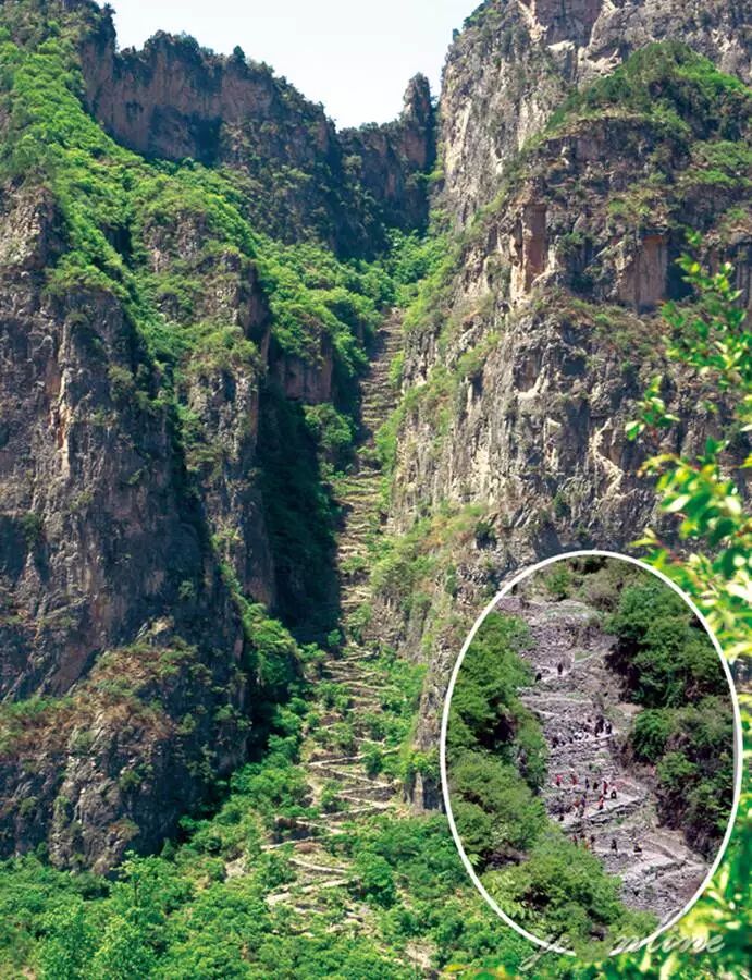 要想登岭,必须在前人修建的天梯上攀爬,异常险要,绝对挑战每一个人的勇气和胆量。